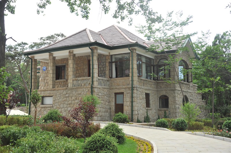 3.北戴河老别墅的建筑特色:北戴河老别墅的设计多为外国人、而建筑者则都是中国人。建筑风格从整体上看是欧式风格,从细节上看,由于来到北戴河的外国人从世界各国远道而来、宗教和文化背景不同,所以别墅形式多样、风格各异,海滨别墅以英国的维多利亚式为主、其他的有罗马式、哥特式、拜占庭式、德国海德堡式、东洋式、俄式等,还有一部分中式别墅,有的充分吸收了江南私家园林韵意,有的模仿了西方别墅造型。这种老别墅群在中国沿海是独树一帜的,极有建筑艺术价值。虽然是外国人的别墅居多,每个国家的风格各异,但是北戴河的老别墅还都同时具有一些鲜明的特色和共同点,那就是:“高台明廊、红顶素墙”。(1)有屋必有廊、廊必深邃,有的大廊面积几乎与住室面积相当。(2)高台建筑,绝大部分别墅都筑高台,或高或低,别墅主体不超三层,这种高台别墅在整体上给人以庄重感。(3)房顶以红色为主,红砖瓦掩映在绿树丛中,更加突出和谐的色调感。(4)外墙以毛石建筑为主,石材取自当地的花岗岩、坚固稳重、石头颜色越久越美、近看朴素、眼看庄重,不会因时光流逝尔衰老沧桑,而是越加古朴凝重,焕发着恒久的魅力。